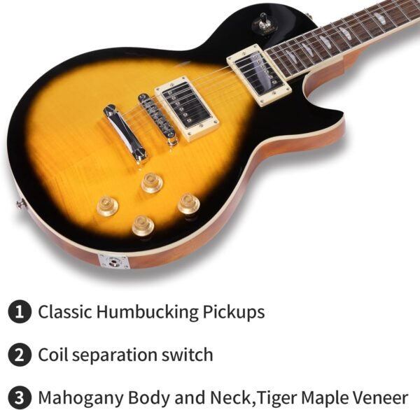 【Classic Humbucking Pickups】The two classic humbucking pickups can give you a round,wide,full tone with three stops to switch between at any time,and you can add more tones with the coil separation switch,giving you a different and new experience for a variety of musical styles.
